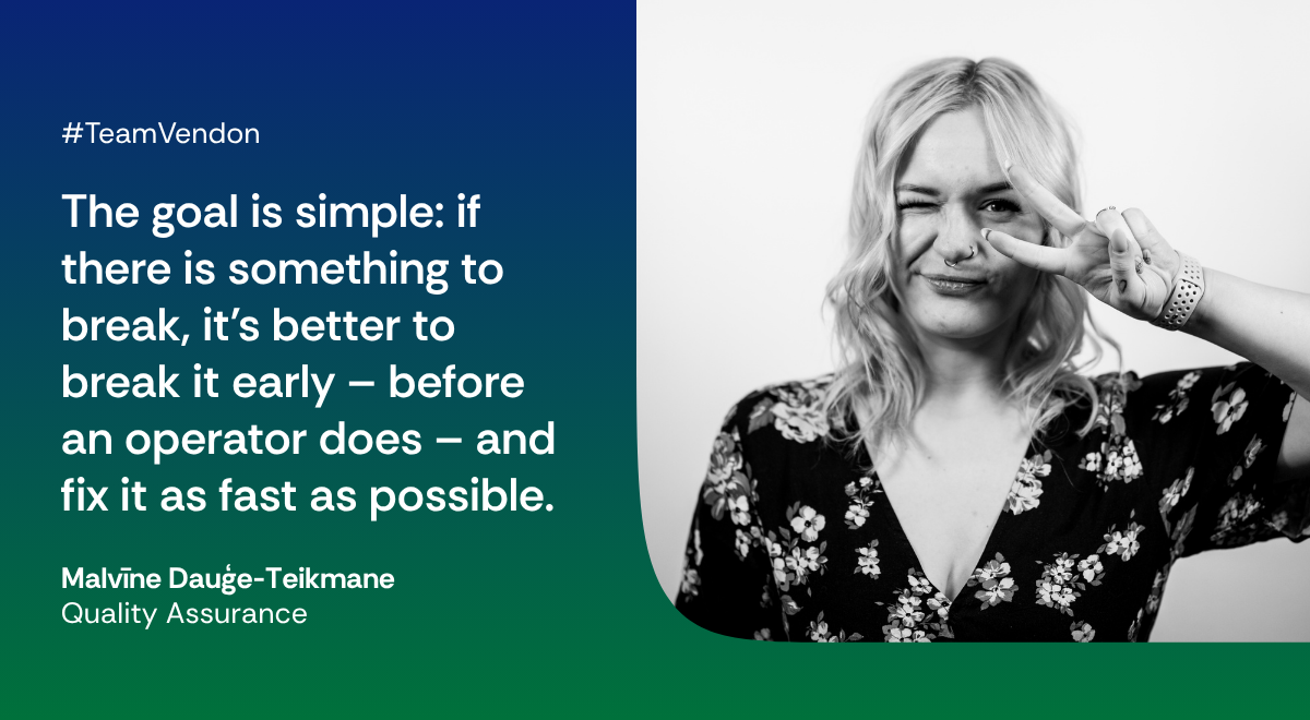 At Vendon, that someone is often Malvīne, part of the Quality Assurance (Q&A) team.